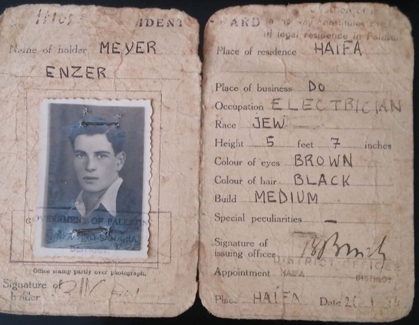 PALESTINE ID PASS-BRITISH TROOPS TRANSJORDAN MILITARY: OSKAR ADLER